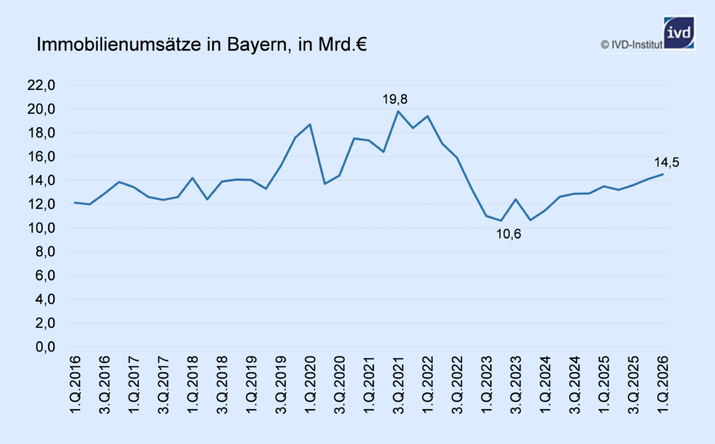 „Der bayerische Immobilienmarkt setzte seine Erholung auch zu Beginn des Jahres 2026 fort. Nach der Stabilisierung im Jahr 2024 und der spürbaren Belebung 2025 nimmt die Marktaktivität weiter zu – trotz weiterhin anspruchsvoller Rahmenbedingungen“, so Prof. Stephan Kippes, Leiter des IVD-Marktforschungsinstituts. „Allerdings ist zu berücksichtigen, dass die Zahlen für das erste Quartal 2026 noch überwiegend vor der Eskalation des Iran-Konflikts erhoben wurden. Dessen wirtschaftliche Folgen – insbesondere steigende Energiepreise und wachsende Unsicherheiten – dürften sich erst in den kommenden Quartalen deutlicher in den Marktdaten niederschlagen.“